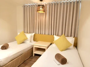 Stay in this bedroom with two single pocket spring beds with all the comforts perfect for your group hotel experience.